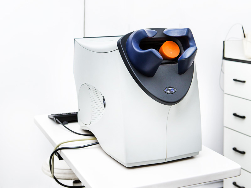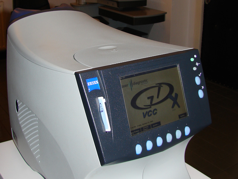 skaningowy polarymetr laserowy, dokonujący pomiaru grubości włókien nerwowych siatkówki. Badanie krótkie, nieinwazyjne, niewymagające rozszerzenia źrenic: